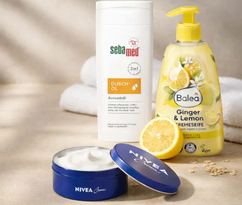 Discover high-quality German bath and body products designed for daily cleansing, hydration and protection. Dermatologically tested formulas — often mineral oil-free and paraffin-free — developed under strict EU standards.