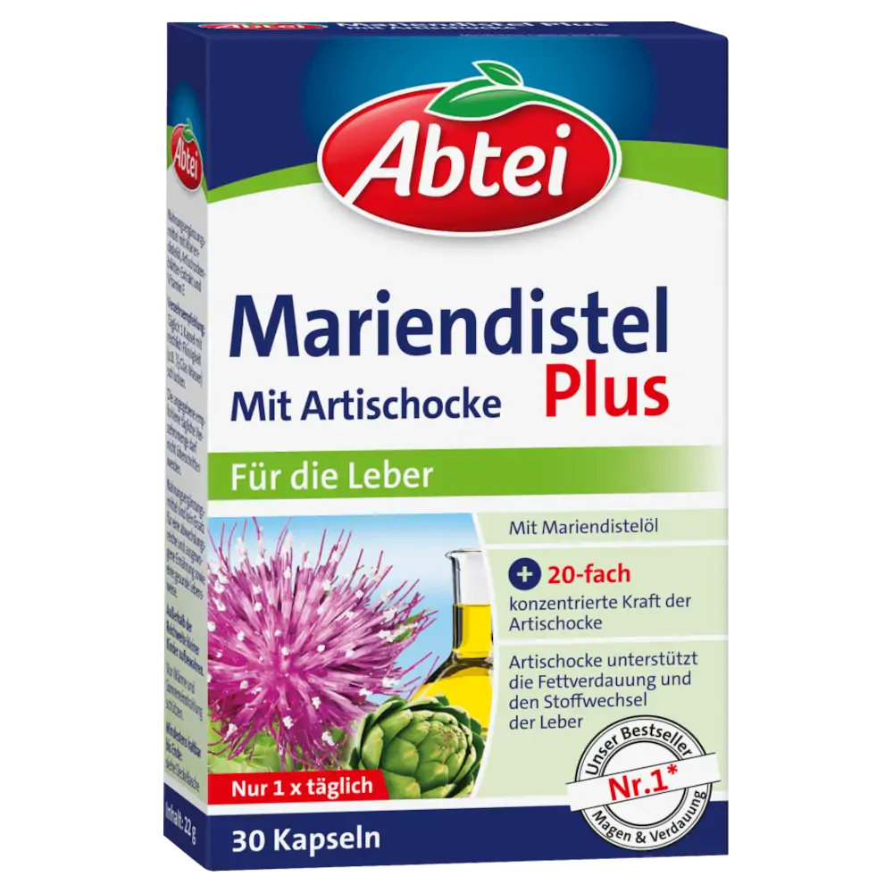 Abtei Milk Thistle Plus Capsules combine high-quality milk thistle oil with artichoke leaf extract to support liver function.