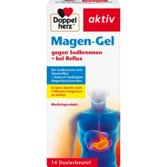 Doppelherz Active Stomach Gel is a fast-acting medical device designed to relieve symptoms associated with acid-related stomach discomfort, including heartburn, acid reflux, and indigestion. The ready-to-use oral gel is packaged in convenient single-dose sachets, making it suitable for on-the-go use and immediate symptom management after meals or before bedtime.