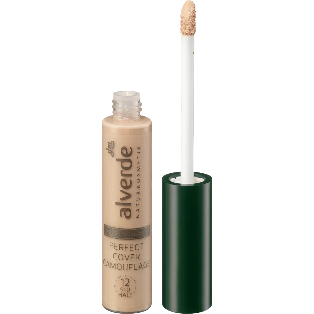 Experience flawless, long-lasting coverage with the alverde NATURKOSMETIK Professional Perfect Cover Camouflage Concealer 02 Beige. This highly pigmented, liquid concealer delivers a powdery-matte finish that lasts up to 12 hours, effectively concealing dark circles, redness, and uneven skin tone while maintaining comfort and wearability.