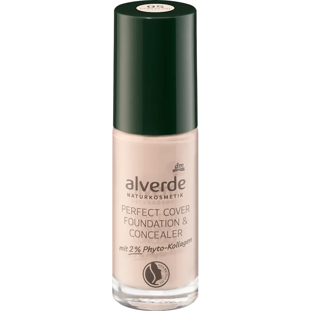 The alverde NATURKOSMETIK Foundation & Concealer in shade 05 Porcelain is a dual-purpose cosmetic product that combines the benefits of foundation and concealer in one. Designed to provide high coverage, it effectively conceals redness, blemishes, and dark circles, delivering a flawless complexion. The formula contains 2% Phyto-Collagen, a plant-based ingredient known to support skin elasticity and reduce the appearance of fine lines.