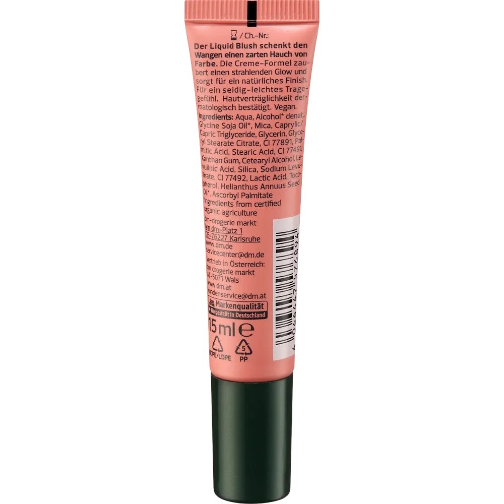Discover a naturally radiant flush with the alverde NATURKOSMETIK Liquid Blush in shade 10 Vintage Rose. This velvety, buildable formula imparts a soft, old-rose tint that blends seamlessly into the skin, delivering a youthful, natural glow.