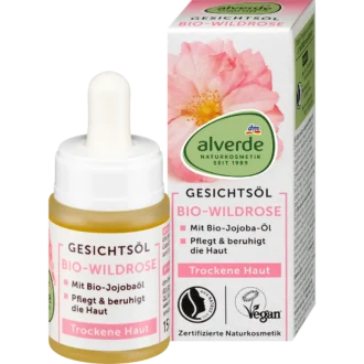 The alverde NATURKOSMETIK Wild Rose Facial Oil is a rich, plant-based treatment designed to support skin elasticity and reduce moisture loss. Formulated with a blend of natural oils, including wild rose oil, it helps maintain a smooth and well-conditioned complexion.