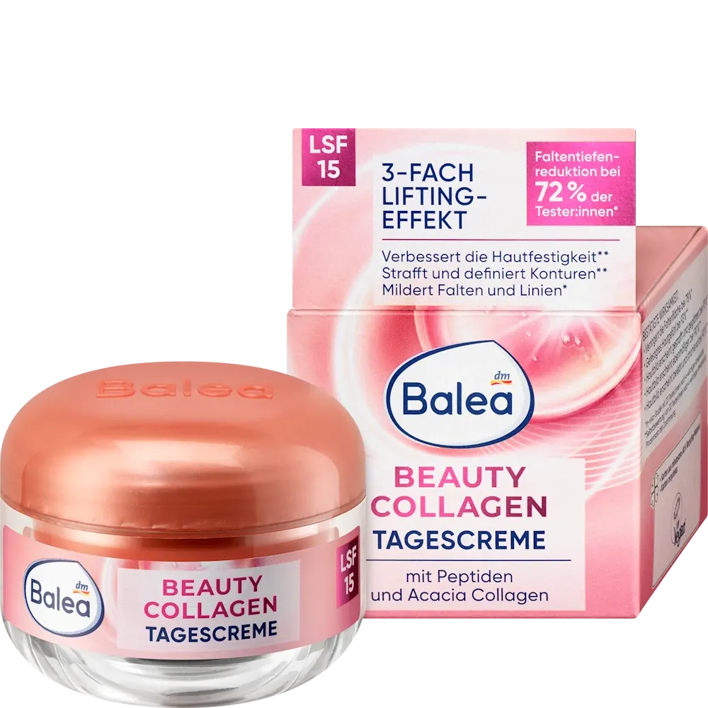 Rejuvenate your skin with this targeted anti-aging daily moisturizer. The Balea Beauty Collagen Day Cream SPF 15 is specially formulated to support the skin’s natural collagen production and improve structural density. Featuring a plant-based collagen booster and Acacia collagen, it provides intensive moisture while noticeably smoothing the skin’s surface for a firmer, more lifted appearance.