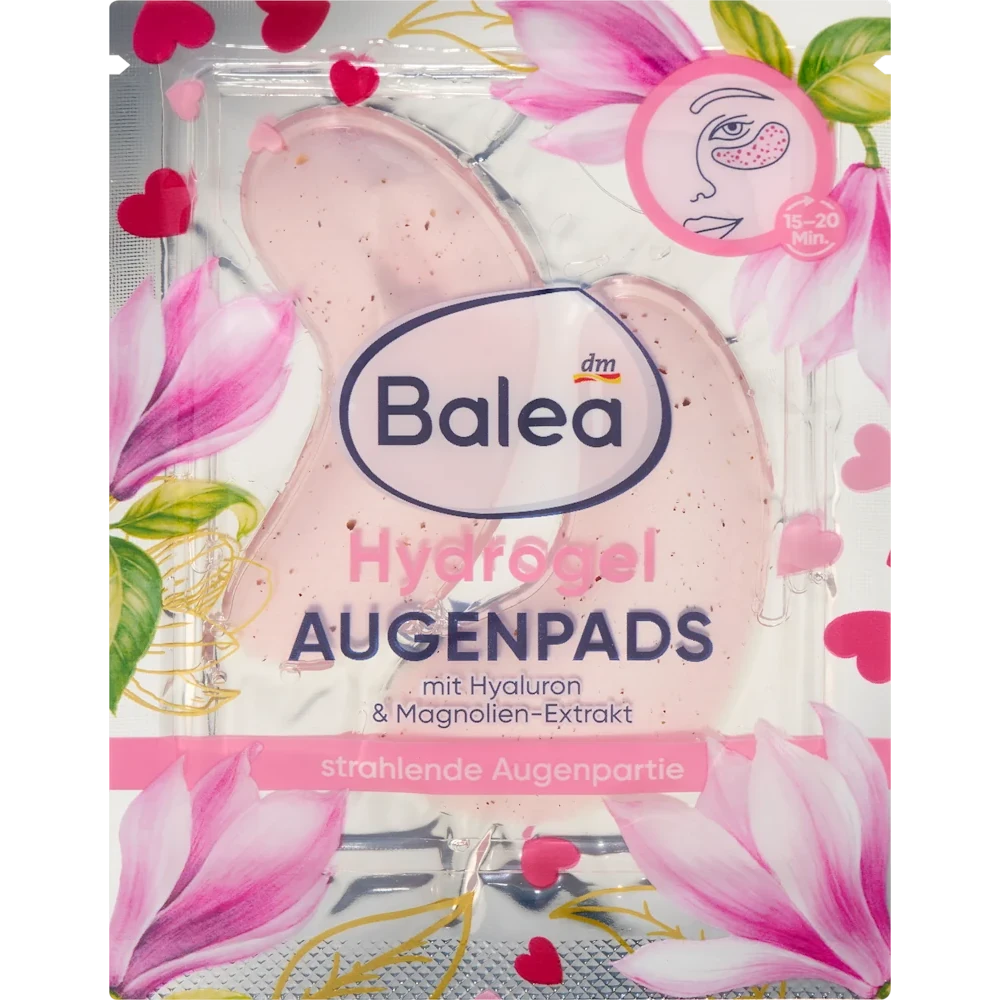 Balea Magnolia Eye Pads make the eye area shine with a fresh glow. The combination of hyaluronic acid and magnolia extract intensely hydrates and revitalizes delicate skin. The patches gently adhere to the skin, delivering their soothing effect. Tired eyes appear less fatigued, as dark circles and puffiness are reduced. For a fresh and radiant look, every day.