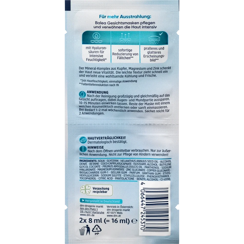 Drench your skin in refreshing moisture with a professional-grade hydration treatment. The Balea Hyaluron Face Mask is specifically engineered to replenish the skin’s moisture reservoirs and provide an instant plumping effect. Its cooling, gel-cream texture absorbs beautifully, leaving your skin feeling instantly relieved and refreshed. By utilizing a high-purity Hyaluronic Acid complex, it ensures you achieve a perfectly clean, radiant, and balanced skin tone. It is the ideal weekly essential for transforming dehydrated skin into smooth skin that looks visibly revitalized and healthy.