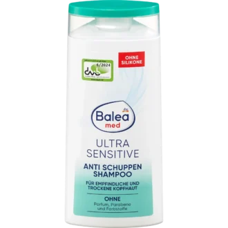 The Balea MED Anti-Dandruff Shampoo Ultra Sensitive is specifically developed for sensitive, dry and irritation-prone scalp affected by dandruff. Its gentle cleansing formula removes flakes effectively while maintaining scalp comfort.