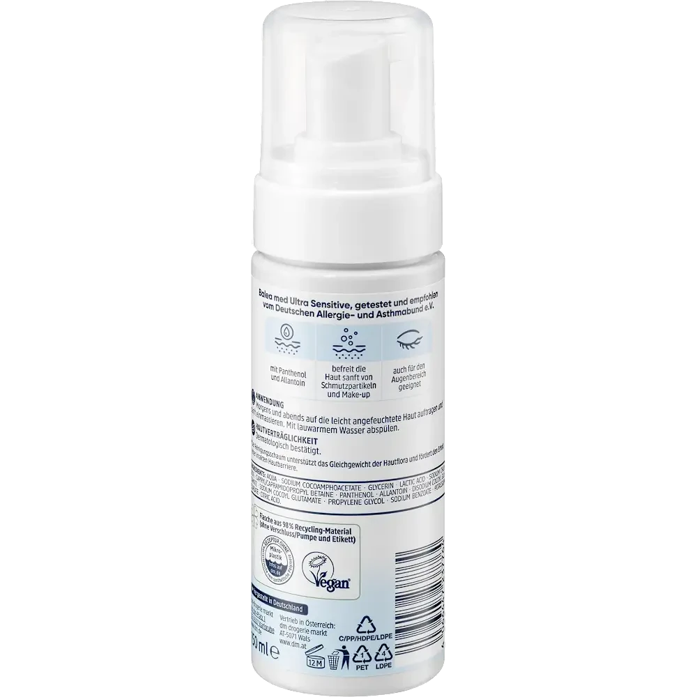 Start your skincare routine with the ultimate gentle touch. The Balea Med Ultra Sensitive Cleansing Foam is specifically designed for skin that reacts easily to standard cleansers. Its airy, soft texture allows for a deep yet friction-free cleanse, effectively removing impurities and excess sebum. By utilizing a mild surfactant system including Sodium Cocoamphoacetate, it ensures you achieve a perfectly clean, radiant, and balanced skin tone without disrupting the delicate acid mantle. It is the professional choice for maintaining smooth skin while preventing redness and discomfort.