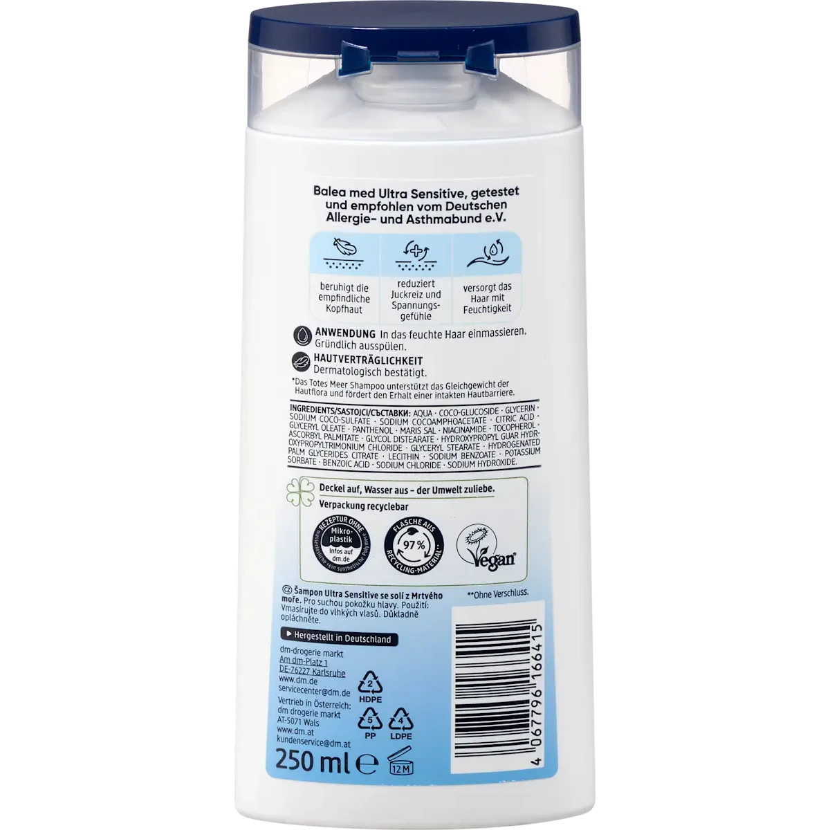 The formula is enriched with Dead Sea salt (Maris Sal), combined with glycerin, panthenol and niacinamide. These ingredients help hydrate the scalp, support the skin barrier and provide soothing care for sensitive skin.