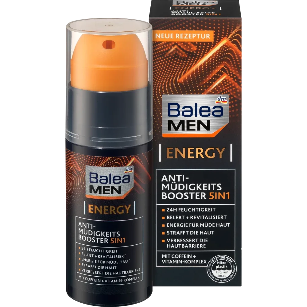 Balea MEN Energy Anti-Fatigue Booster 5in1 provides tired and stressed skin with new energy and freshness every day. It moisturizes 24h, tones the skin and revitalizes it noticeably.