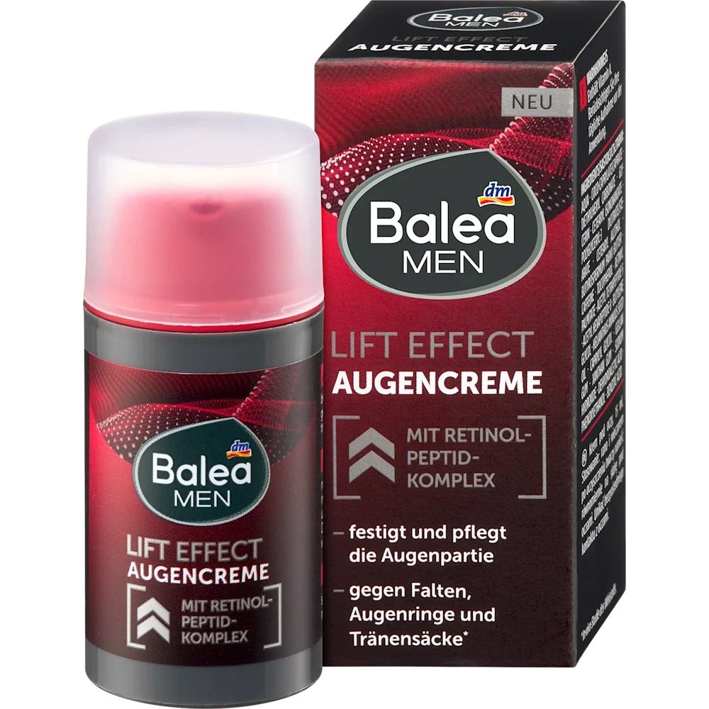 Balea MEN Eye Cream Lift Effect is a vegan eye cream designed to support tired and stressed skin around the eyes with targeted daily care. Its lightweight texture absorbs quickly and helps refresh the eye area while delivering a sensation of comfort and support, aligning with everyday men’s grooming needs.