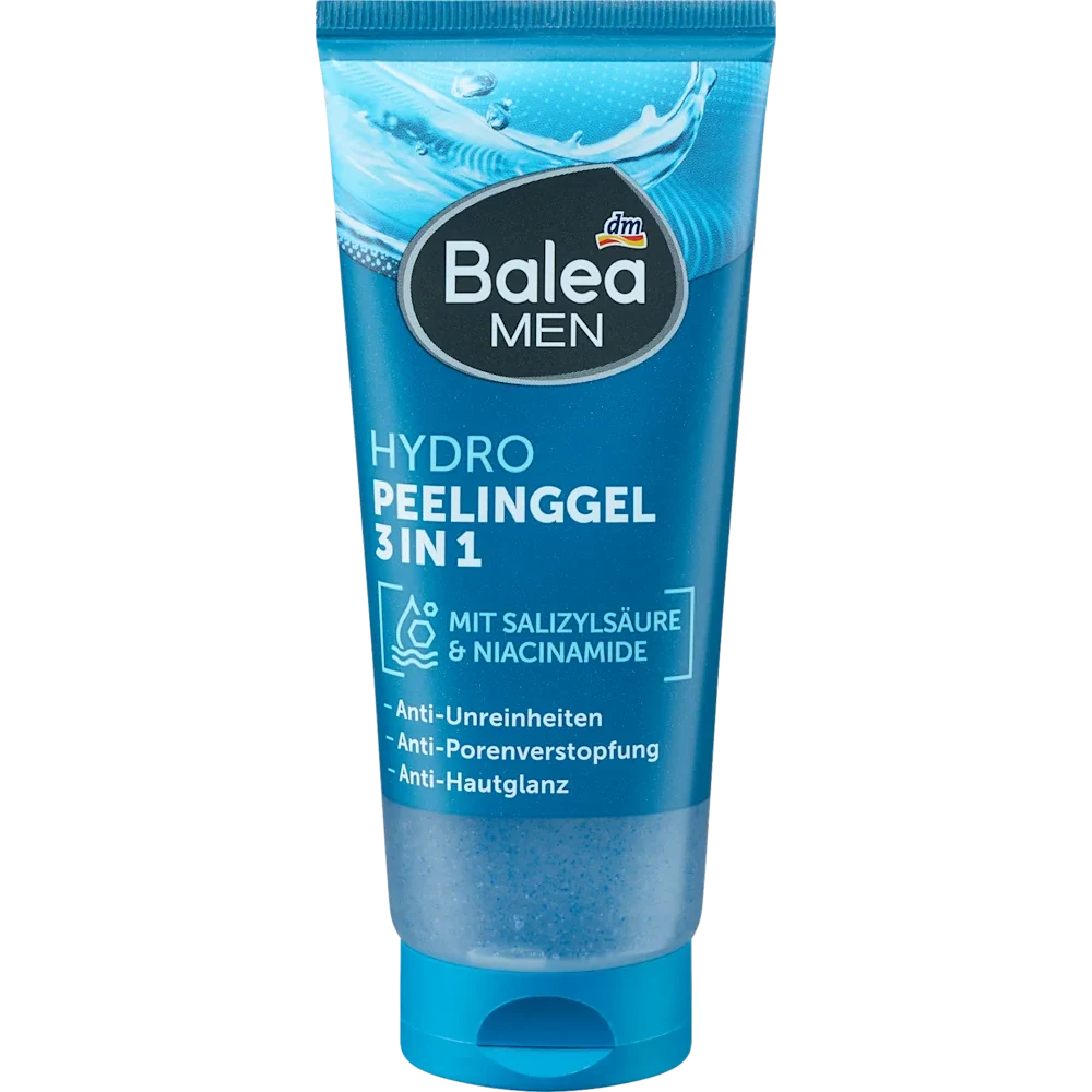 Balea MEN Hydro Peeling 3in1 is a vegan 3-in-1 facial gel for men that combines cleansing, exfoliation and refreshment in a single step. Designed especially for male skin, it targets dullness, dead skin build-up and excess shine with a gentle yet effective formula that keeps the complexion feeling clean, smooth and refreshed. The pH-skin-neutral composition reflects a straightforward care proposition that steers clear of alcohol, parabens, paraffins/mineral oils and nanoparticles.