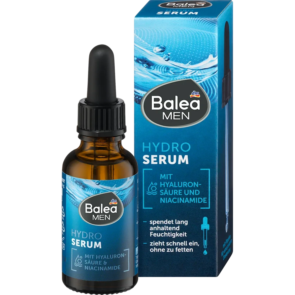 Balea MEN Hydro Serum is a vegan hydrating serum crafted for men’s facial skin seeking targeted moisture with a lightweight, non-greasy texture. Designed for daily application, it combines effective humectants like hyaluronic acid, niacinamide, glycerin, panthenol and allantoin to support hydration, refresh feel and help maintain a balanced skin look throughout the day. The formula absorbs quickly and delivers an invigorating, everyday care experience tailored to male grooming needs.