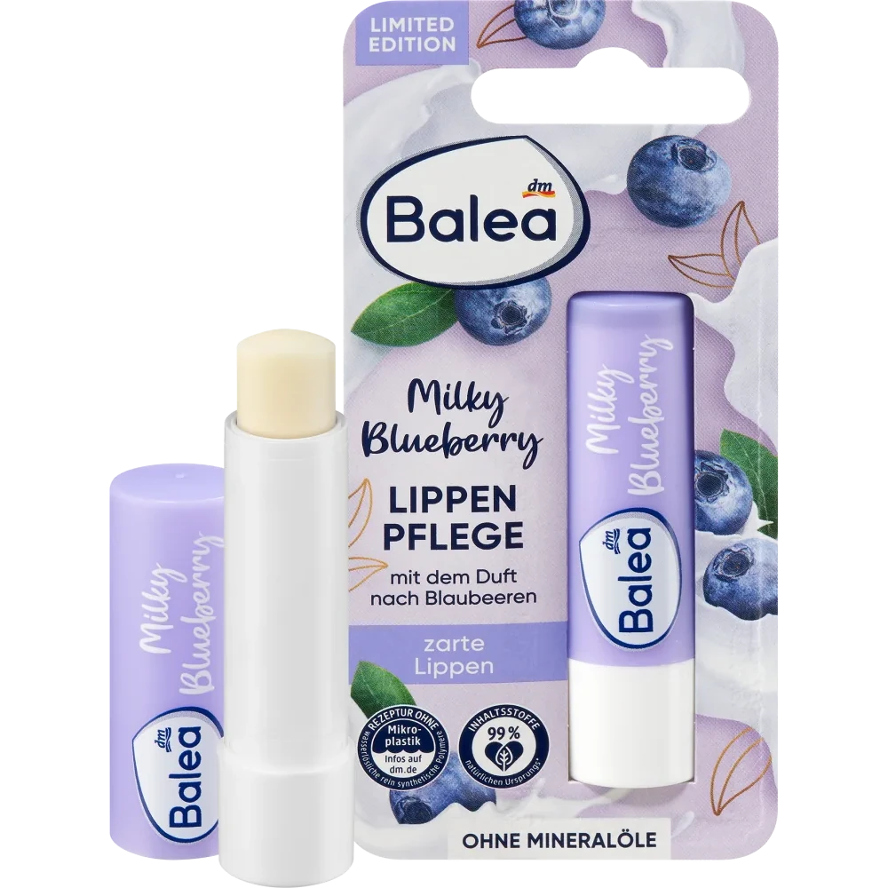 The Milky Blueberry lip care from Balea is a real must-have for on the go and at home. The care contains shea butter and milk and provides intensive lip care.