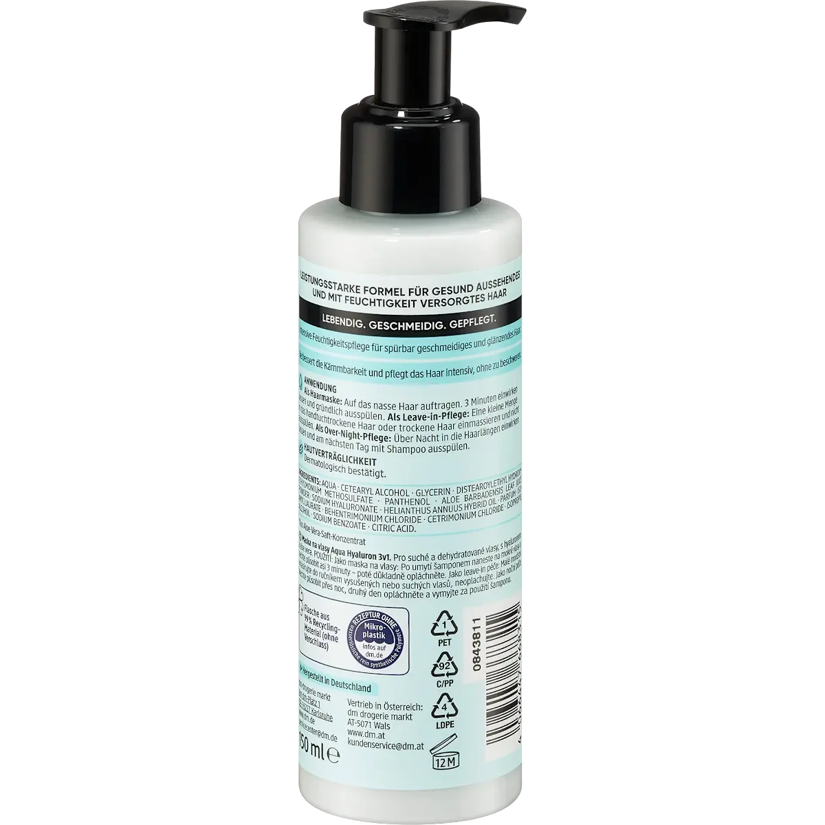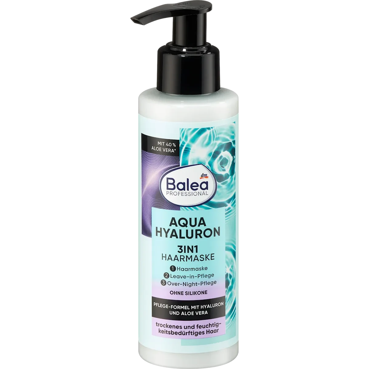 The Balea Professional Aqua Hyaluron 3in1 Hair Mask is developed for dry, brittle and moisture-deprived hair. Its intensive formula delivers deep hydration while improving smoothness, shine and manageability after each use.