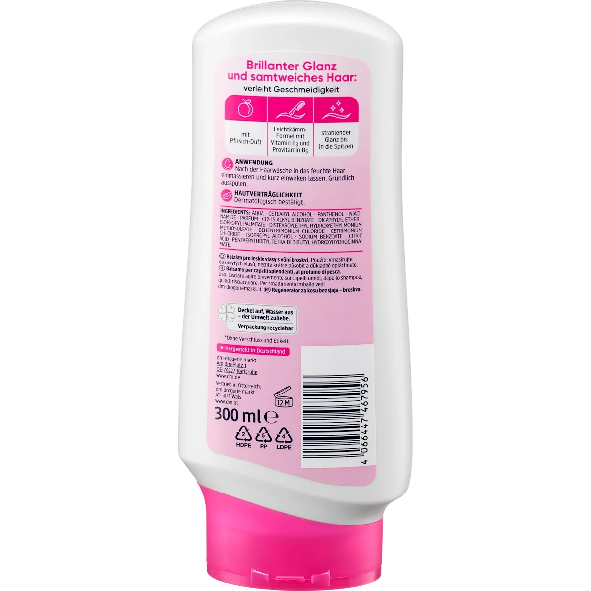 With its pleasant peach scent, the conditioner adds a fresh sensory touch to your routine while helping the hair look healthier, silkier and more cared for.