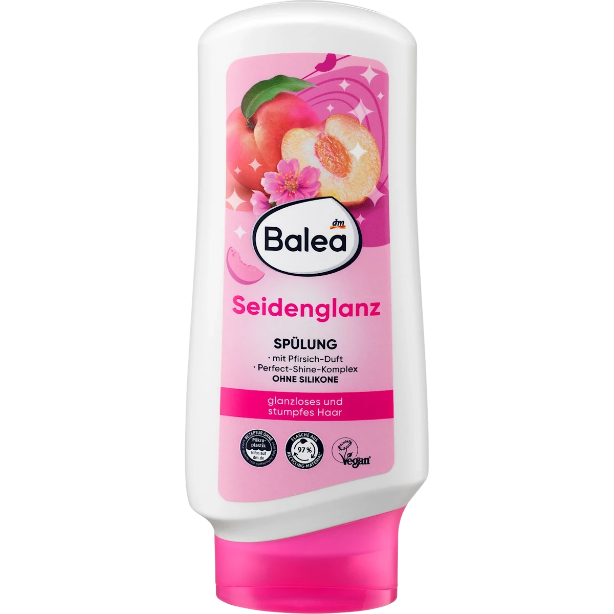 The Balea Silky Shine Conditioner is designed for dull and lackluster hair that needs renewed radiance and a smoother finish. Its lightweight care formula helps improve combability, smooth the hair surface and leave the lengths feeling soft and visibly more polished after each wash.