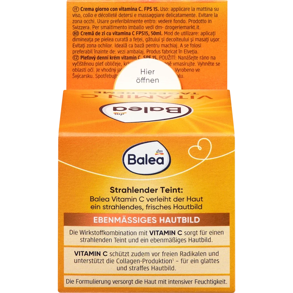The Balea Vitamin C Face Cream SPF 15 is a lightweight daily moisturizer that hydrates, brightens, and protects. Fortified with Vitamin C, it helps support your skin’s collagen production and neutralizes free radicals for a more even, radiant complexion.