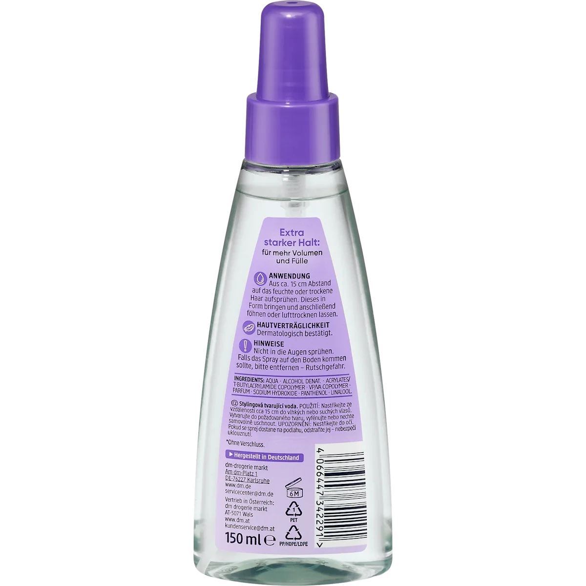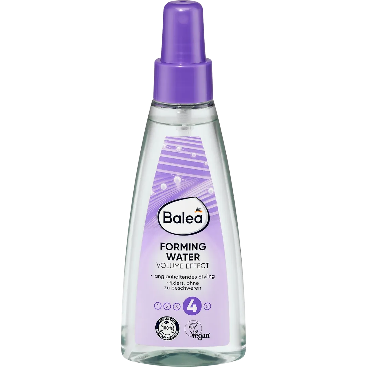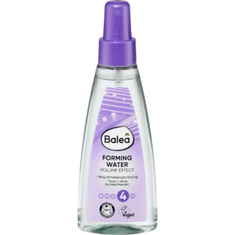 The Balea Forming Water Volume Effect is a lightweight styling liquid designed to create volume, structure and long-lasting hold without weighing the hair down. Its innovative water-based formula ensures flexible styling with a natural finish.