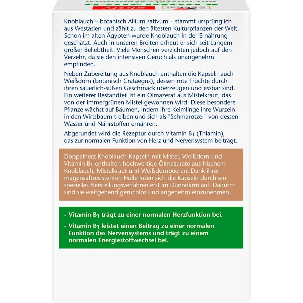 Garlic is of special importance for people of advanced age. Also, middle aged people can benefit from the positive effects of Doppelherz aktiv Garlic capsules with Hawthorn on the health, in particular against the general calcification of our cardiovascular system.
