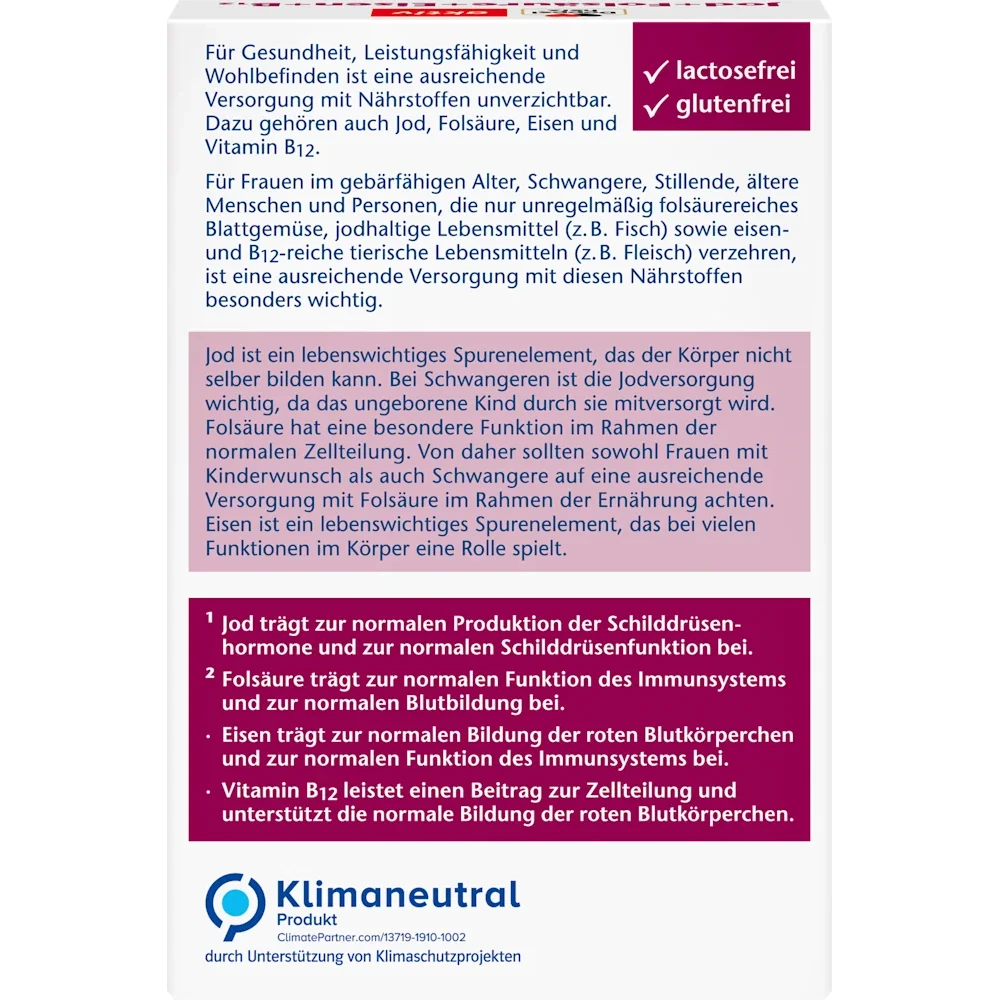 Iodine is a vital trace element that the body cannot produce itself. It contributes to normal thyroid function. Iodine intake is important for pregnant women, as it is also supplied to the unborn child.