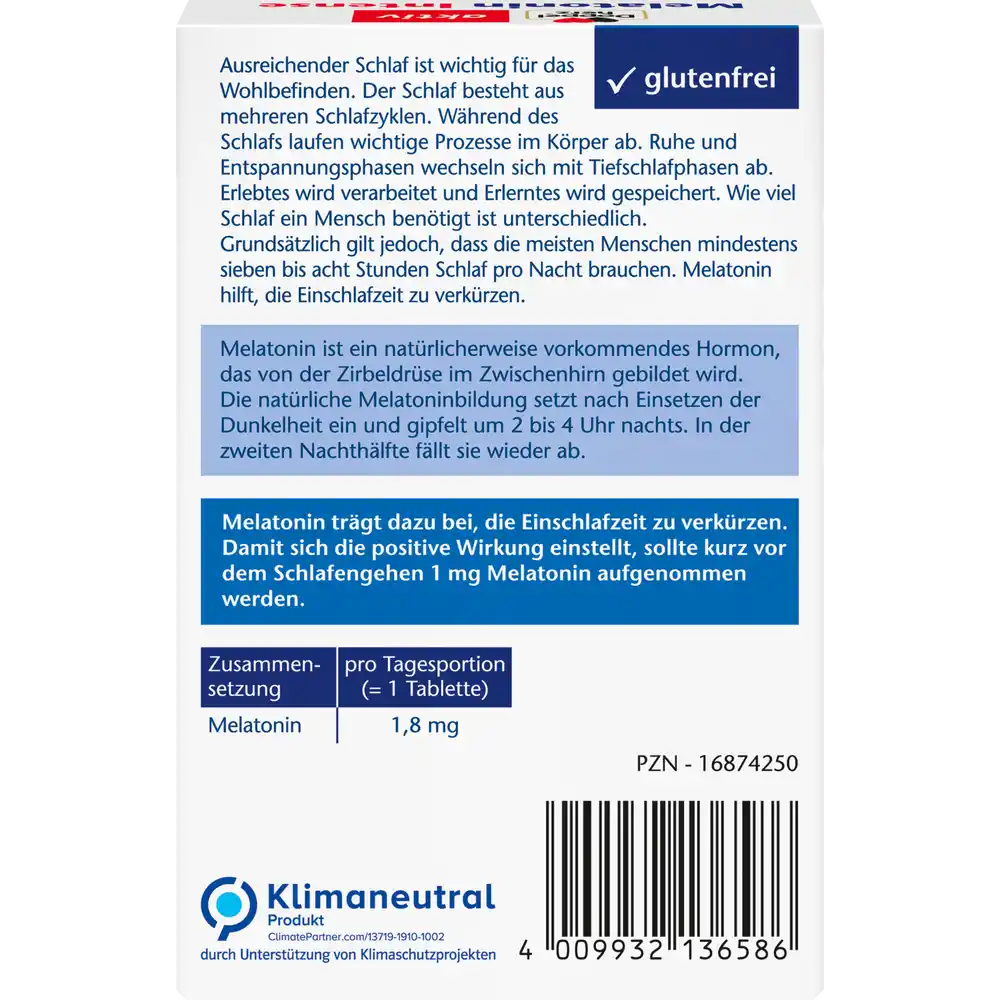 Getting enough restful sleep is essential for your body and mind. Melatonin is the body’s natural sleep hormone and helps to shorten the time it takes to fall asleep – especially during stress or irregular routines.