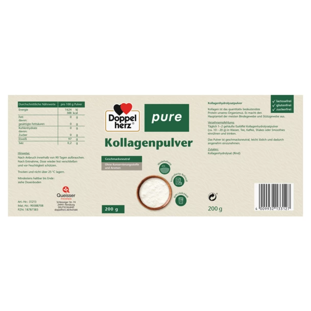 Doppelherz Pure Collagen Powder delivers high-quality bovine collagen hydrolysate from pasture-raised cattle, offering a pure supplement with no added colours, flavours, or preservatives.