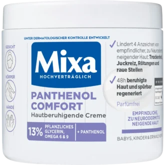 The Mixa Panthenol Comfort Cream is a versatile all-purpose cream designed for very sensitive, dry and irritation-prone skin. Its rich yet non-greasy texture provides immediate comfort and helps reduce tightness, making it suitable for face, body and hands.