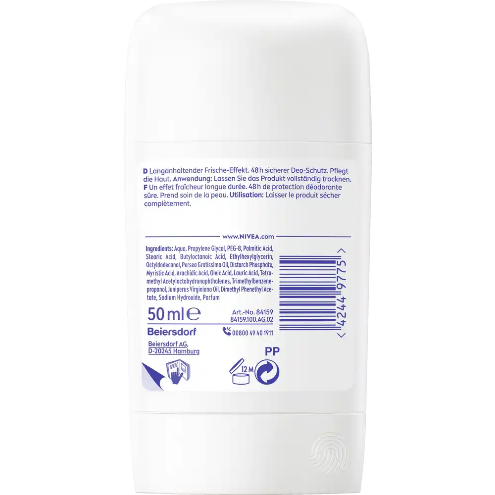 The NIVEA Fresh Natural Deo Stick offers 48 hours of reliable protection against body odor, ensuring a long-lasting feeling of freshness.