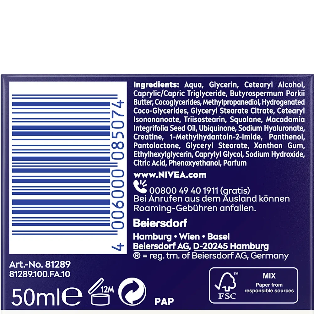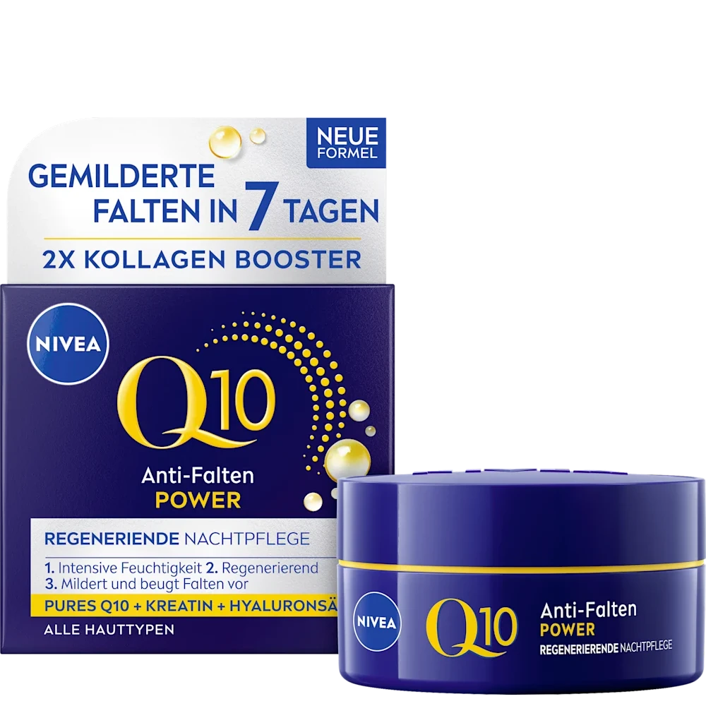 Experience rejuvenated skin with NIVEA Q10 Anti-Wrinkle POWER Night Cream, a rich night cream that works in sync with your skin’s natural restorative cycle. Formulated with a dual collagen booster—pure Q10 and creatine—this potent blend visibly reduces wrinkles in just seven days, while providing intensive hydration and overnight regeneration.