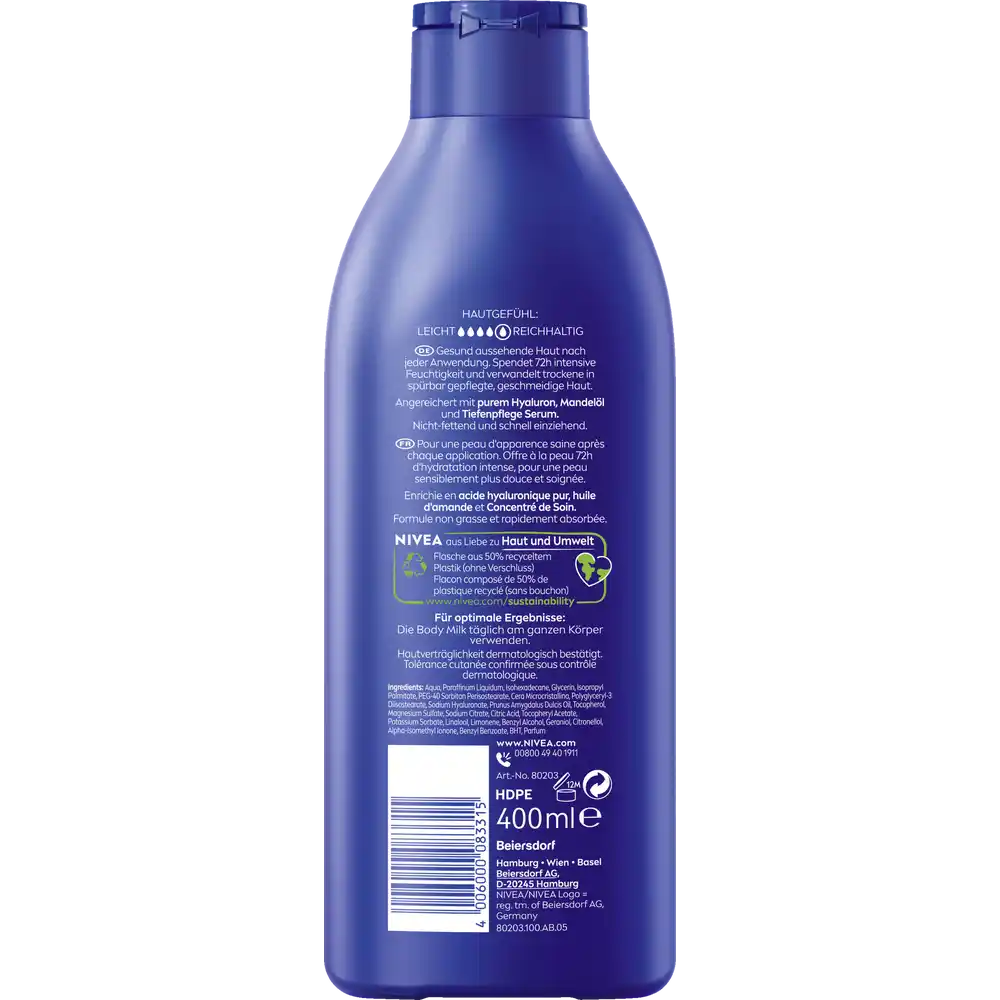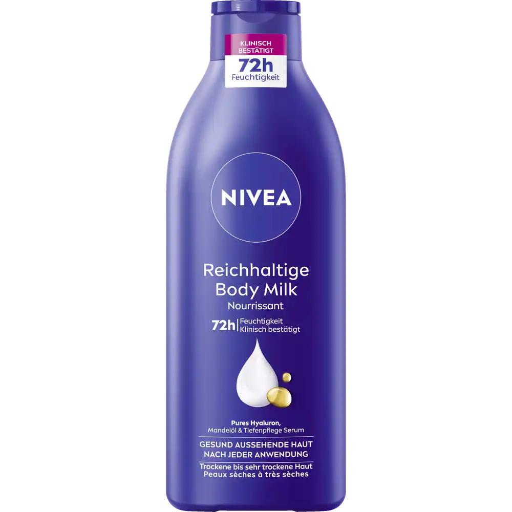 Revitalize your skin with the NIVEA Rich Nourishing Body Milk, specifically formulated to transform very dry skin into noticeably smoother, deeply hydrated skin. This iconic blue bottle contains a clinically proven formula that provides up to 72 hours of intensive moisture, ensuring a healthy-looking glow after every application.