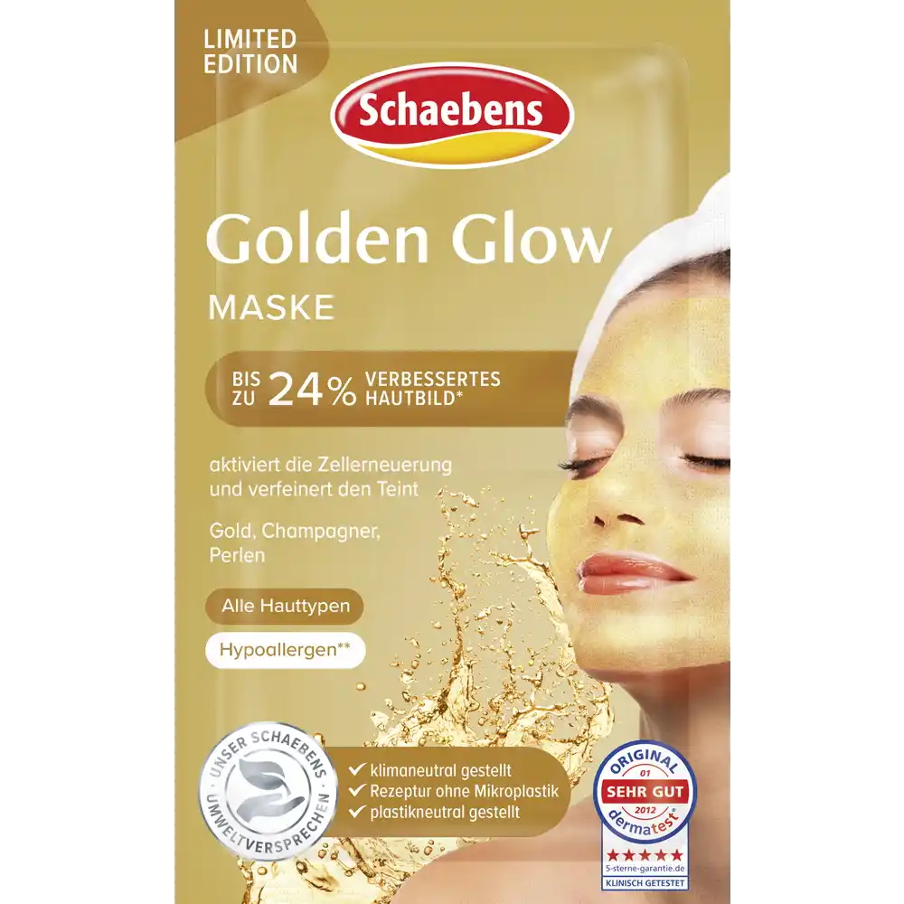 Golden Glow for yor Skin! The gel mask enriched with golden shimmer particles nourishes the skin specifically with valuable active ingredients and gives it a radiant, fresh complexion after just a short time. The formulation with gold, champagne and pearls activates the microcirculation of the cells with its moisturizing and invigorating properties, refines the complexion and revitalizes the skin. The fine champagne fragrance pampers the senses and provides a special moment of care.