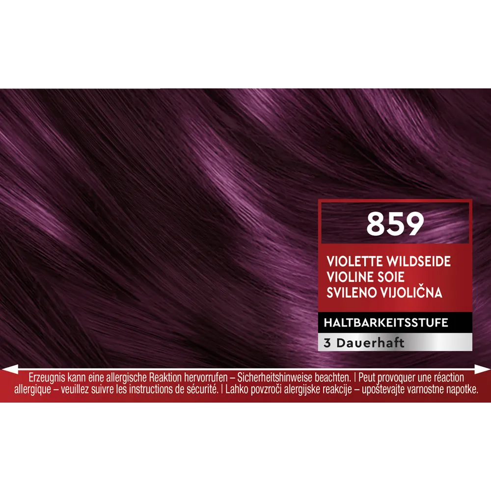 The shade 859 Violet Wild Silk creates an expressive violet tone with deep reflections and brilliant shine. The fashion shade enhances the natural depth of the hair while delivering an even and luminous color result.