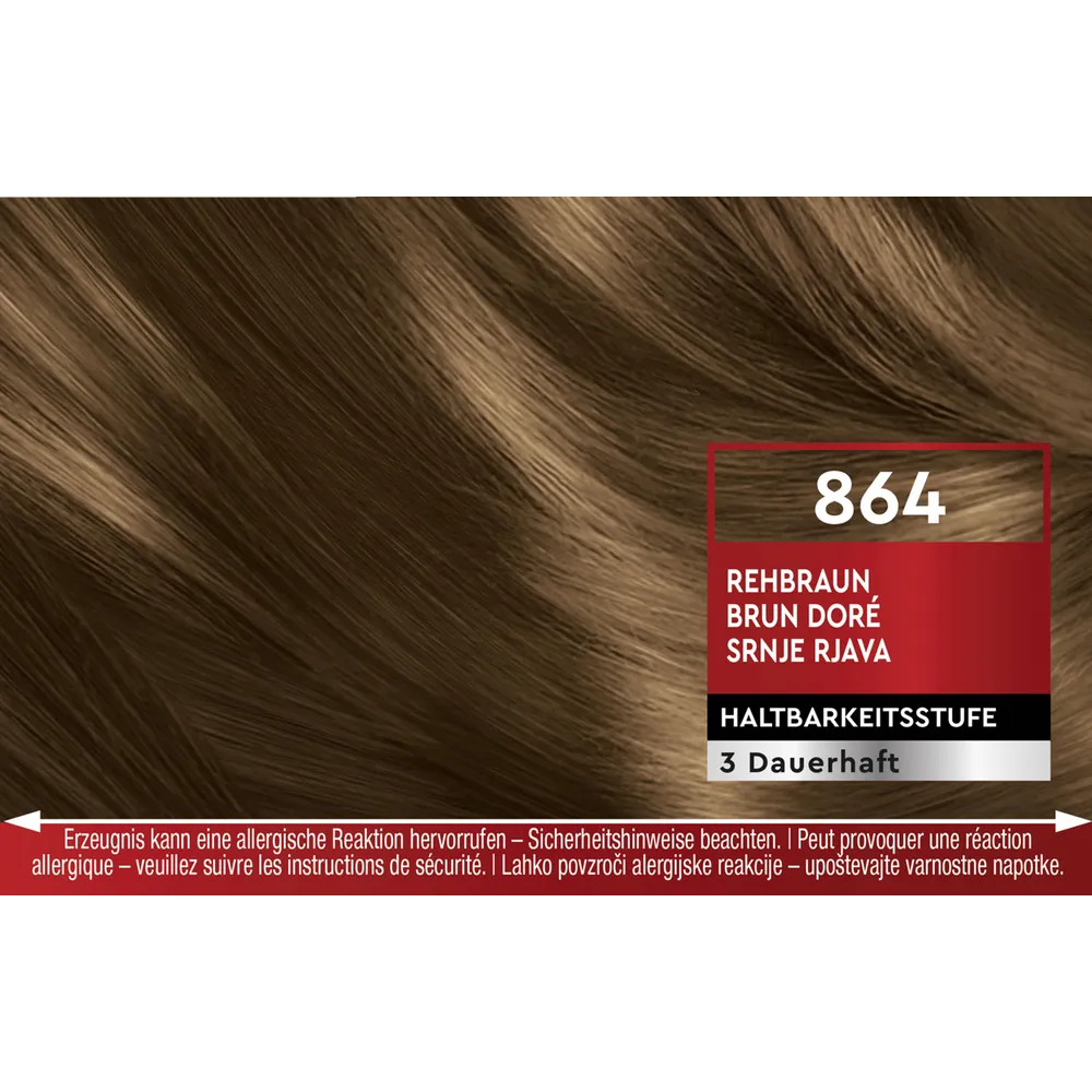 The shade 864 Deer Brown creates a warm and elegant brown tone with natural depth and intense shine. The balanced color pigments enhance the natural beauty of the hair while delivering even, vibrant color results.
