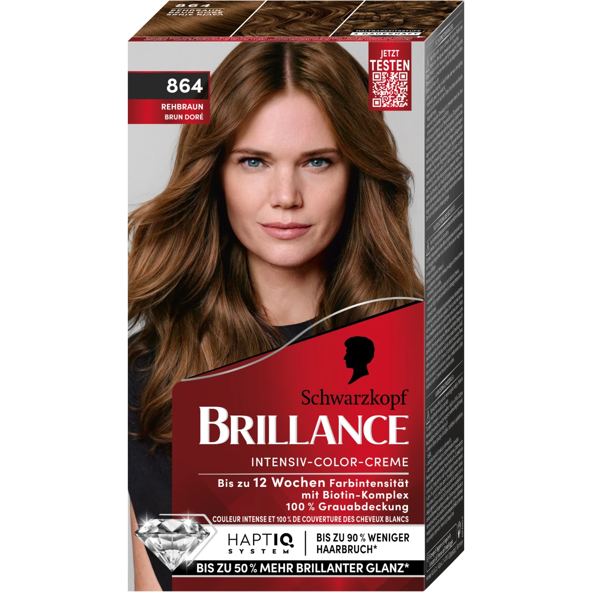 Schwarzkopf Brillance 864 Deer Brown is a permanent hair dye that delivers rich, natural-looking brown color with radiant shine and professional-quality results at home. The high-performance formula provides intense pigmentation and long-lasting color brilliance for up to 10 weeks.