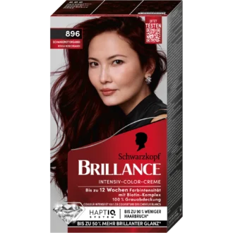 Schwarzkopf Brillance 896 Black Red Organdi is a permanent hair dye designed for bold, expressive color with professional-looking results at home. The high-performance formula delivers an intense black-red shade with radiant shine and long-lasting color intensity for up to 10 weeks.