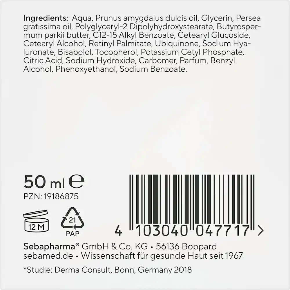 Its composition avoids parabens, mineral oils, nanomaterials, alcohol and artificial colourants, aligning with sebamed’s approach to gentle, clinically-oriented skincare that respects sensitive and ageing skin needs.