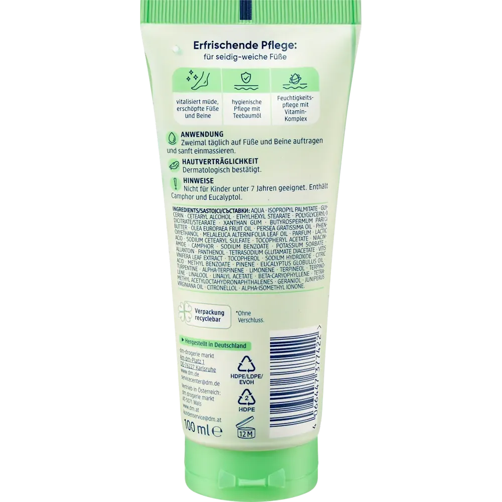Experience a formula that balances hygiene with deep conditioning. Infused with Tea Tree Oil and Red Vine Leaf Extract, this foot cream works to soothe / calm tired legs and provides intense hydration through Shea Butter and Avocado Oil. These active ingredients, along with Niacinamide and Panthenol, significantly aid in barrier repair and support skin regeneration. This sophisticated blend delivers vital antioxidant protection through Vitamin E, leaving your feet looking remarkably radiant and feeling silky-soft.