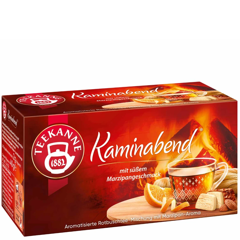 An evening in front of the fire – made easy with Teekanne Kaminabend. The mildly aromatic rooibos tea comes with the wintery taste of sweet marzipan and lets you dream yourself right by the fire. An enjoyable, warming tea moment that couldn’t be more relaxing.