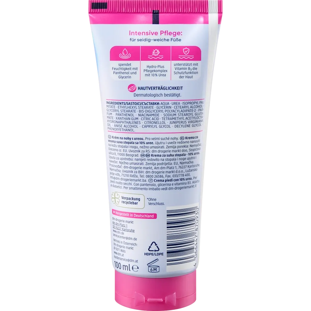 Experience the synergy of medical-grade hydration and skin-restoring vitamins. Infused with Urea and Niacinamide, this foot cream works to soothe / calm irritated skin and provides intense hydration that lasts all day. These active ingredients, combined with Panthenol, significantly aid in barrier repair, helping the skin to regain its natural elasticity. This sophisticated formula delivers vital nourishment, leaving your feet looking remarkably radiant and feeling deeply revitalized.